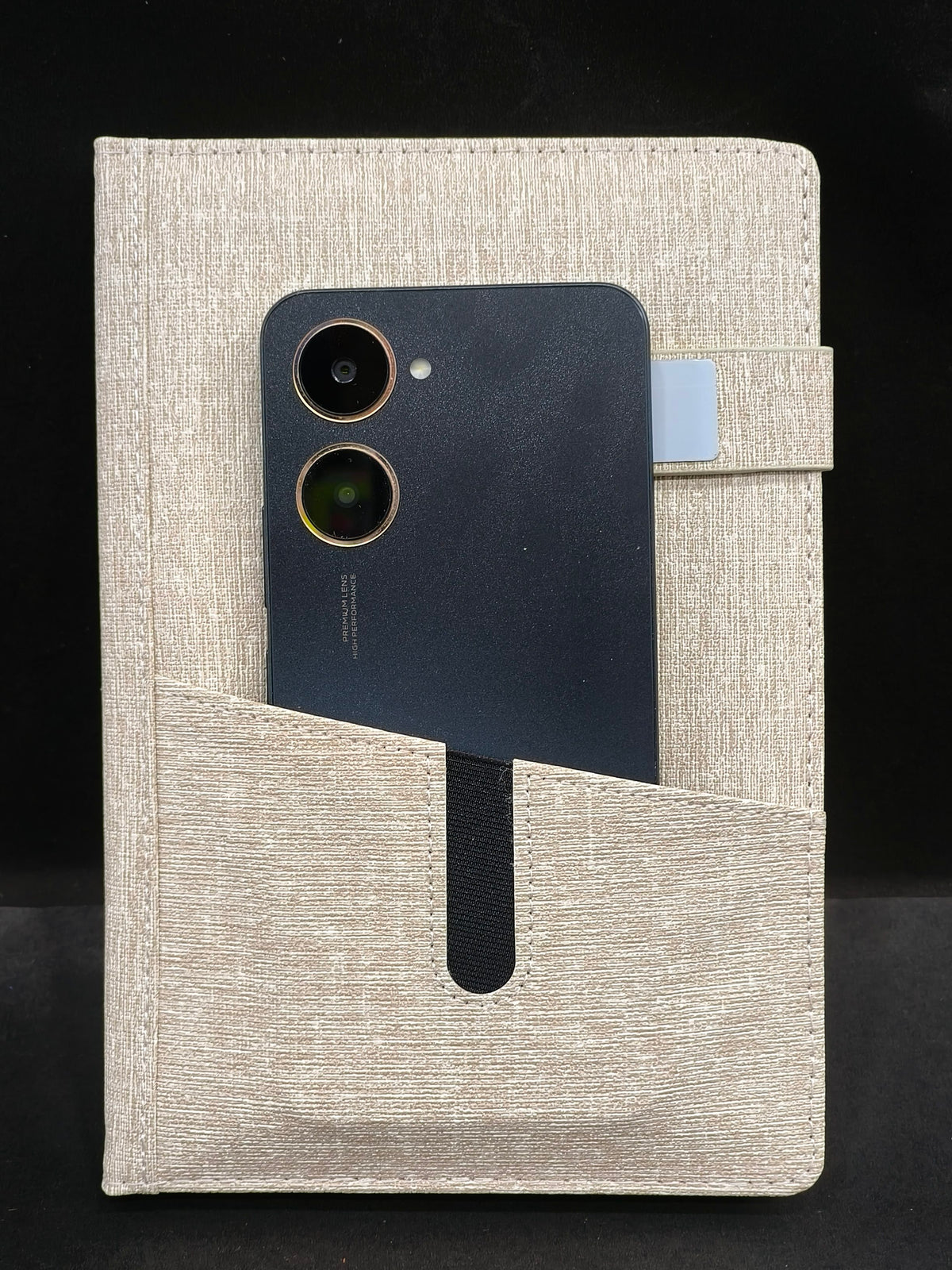 Stylish Fabric Diary with Magnetic Flap & Mobile Holder | Planner and Organiser | For Business, Office and Home | A5 Size - Beige
