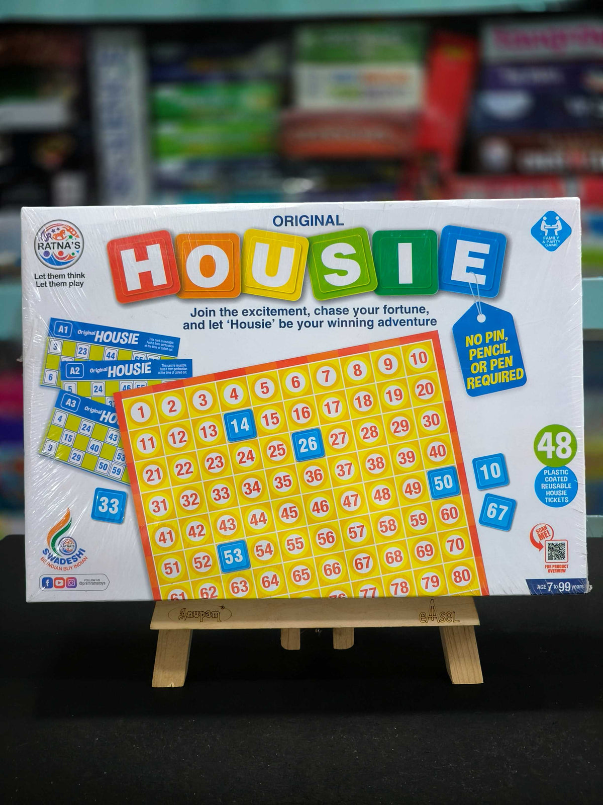 RATNA'S Original Housie Game Set with 48 Reusable Tickets, Tambola Party Games for Kids & Adults