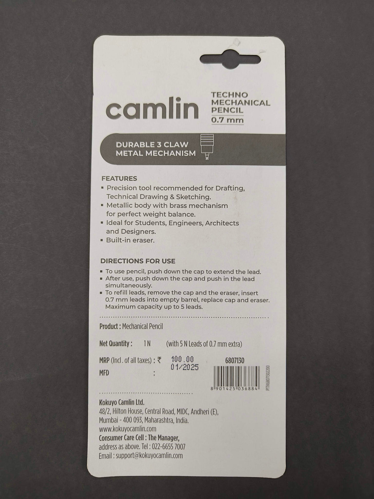 Camlin Kokuyo Techno Exam Mechanical Pencil 0.7 mm – Pack of 1 | Premium Exam Pencil with Dark 0.7mm Lead | Smooth Writing, Precise Grip | Ideal for Board Exams, Competitive Tests, School, Office