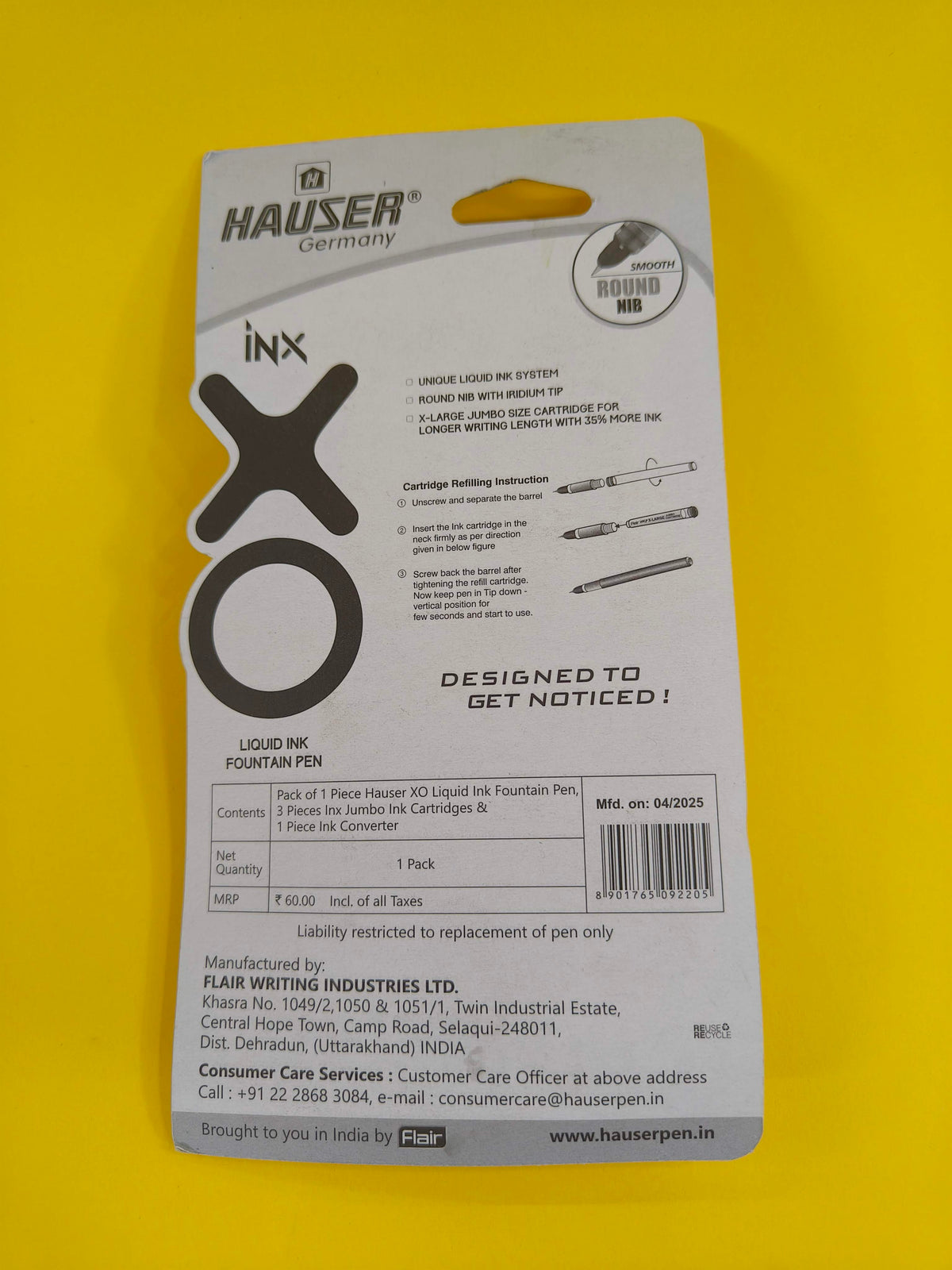 Hauser Germany Inx Fountain Pen | Ergonomic Soft Grip | Liquid Ink | Pack of 2 | Ink Color-Blue | Random Colour