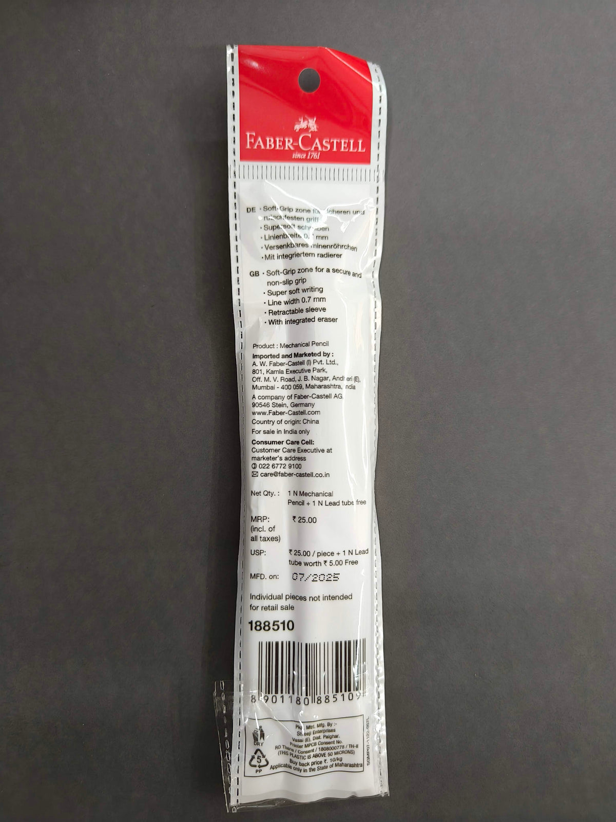 Faber-Castell Soft Grip 0.7 mm Mechanical Pencils | Includes 1 Lead Tube With 5 Leads With Each Black Pencils Pack | Extra Long Twist Eraser | Triangular Barrel For Easy Grip (Assorted Colour)
