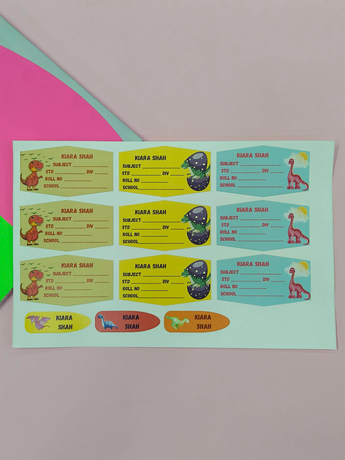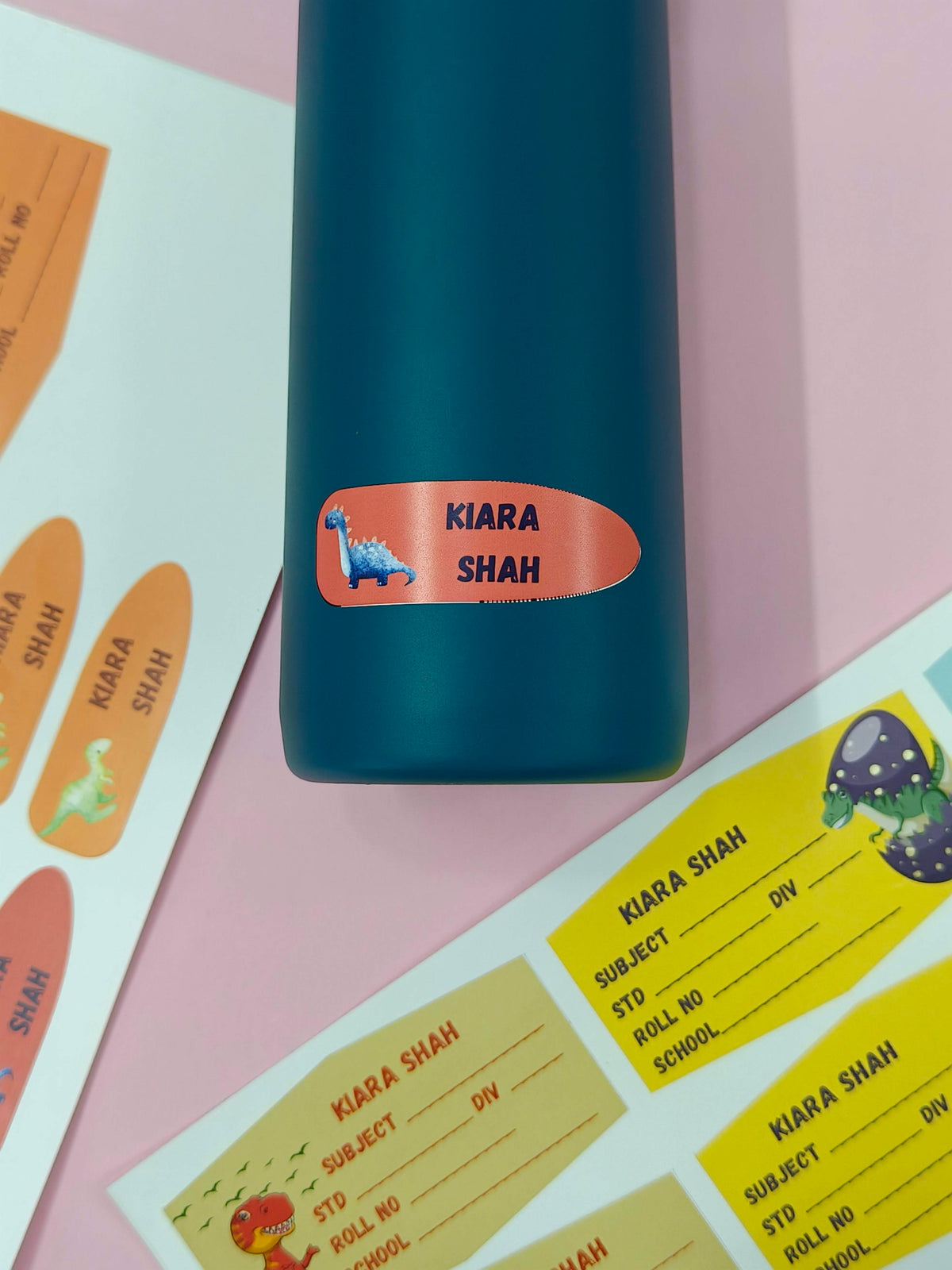 Personalized School Lables and Name Stickers | Dinosaur Theme School Lables and Name Stickers | Custome Waterproof Name Label for Books, Notebooks, Water Bottles, Tiffins, Stationery, 27 Pieces