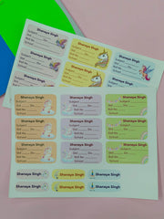 Personalized School Lables and Name Stickers | Unicorn Theme School Lables and Name Stickers | Custome Waterproof Name Label for Books, Notebooks, Water Bottles, Tiffins, Stationery, 27 Pieces