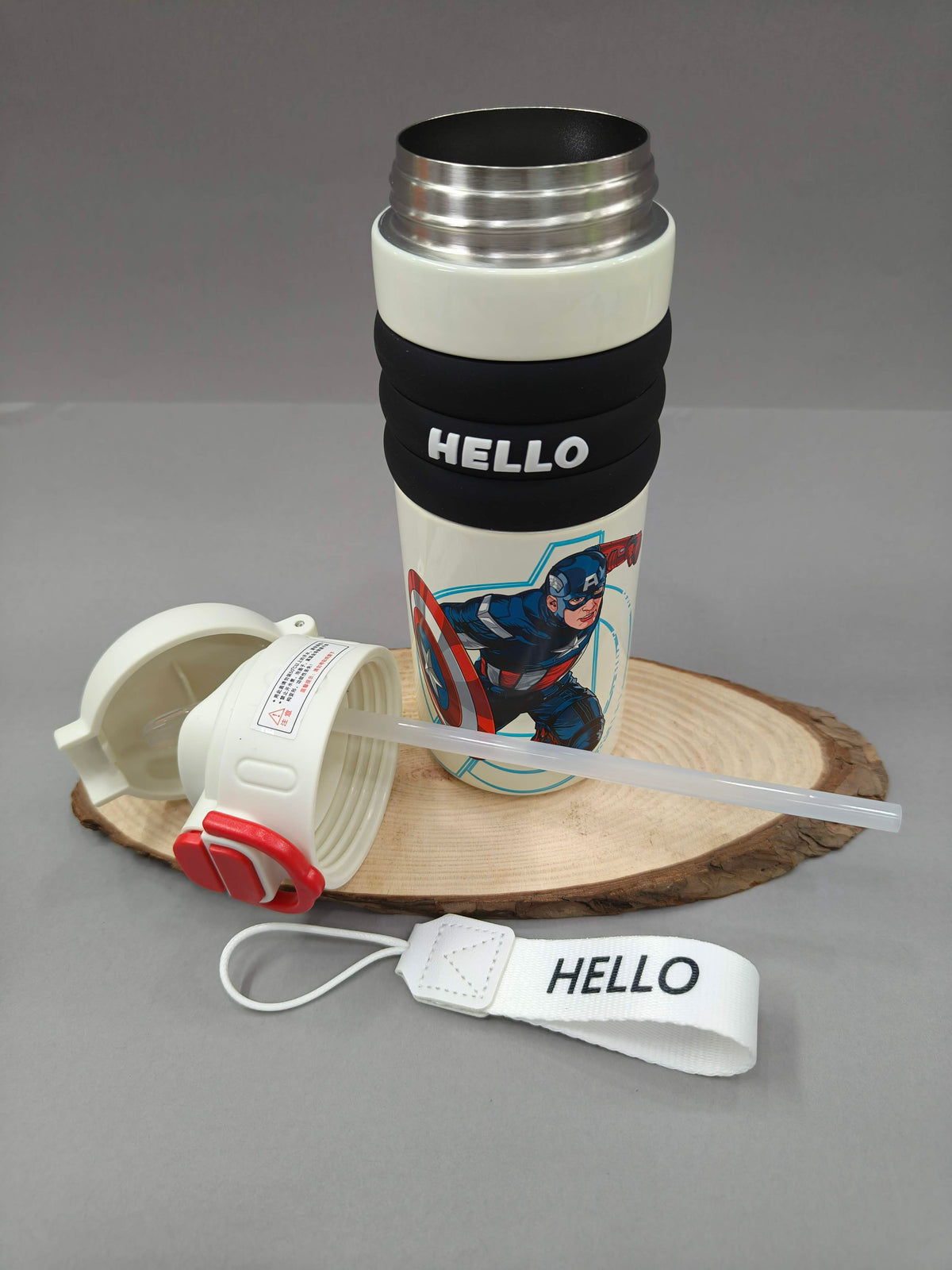 2 in 1 Cap Water Bottle for Kids | Sipper and Spout | Dual Caps Bottle for Girls and Boys | Water Bottle for School, Picnic, Travel | Spill-Proof 520 ml - Captain America