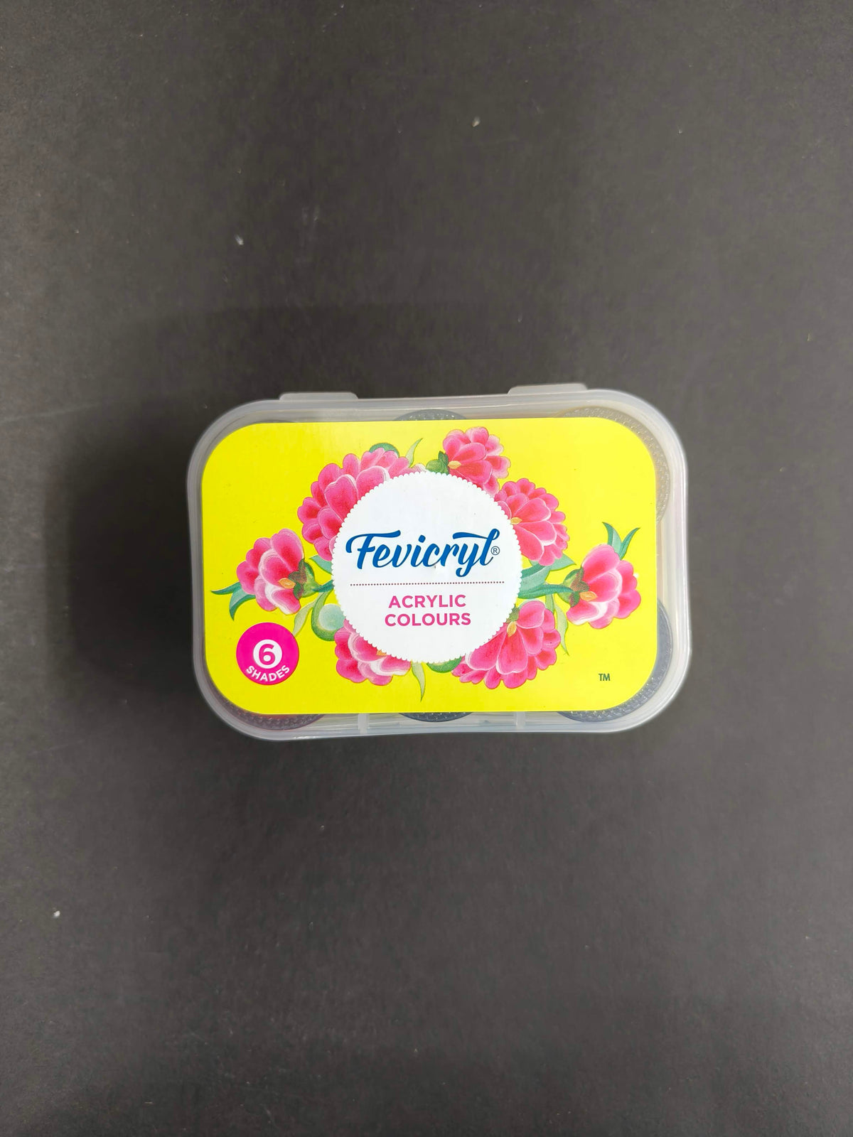 Fevicryl Acrylic Colours Kit | 6 Colours x 15 ml | DIY Paint, Rich Pigment | Multicolour & Multi-surface | Non-Cracking Paint for Canvas, Wood, Leather, Earthenware, Metal
