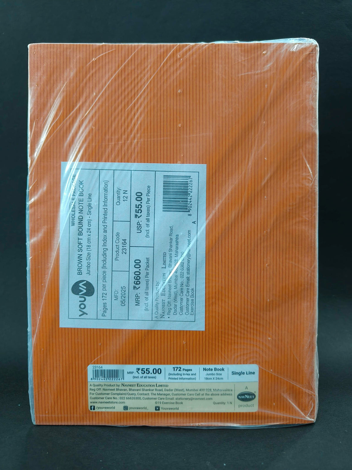 172 Pages A5 YOUVA Navneet Brown Cover | A5 Soft Bound Notebook | 18 cm X 24 cm | Single Line | 172 Pages | Pack of 12