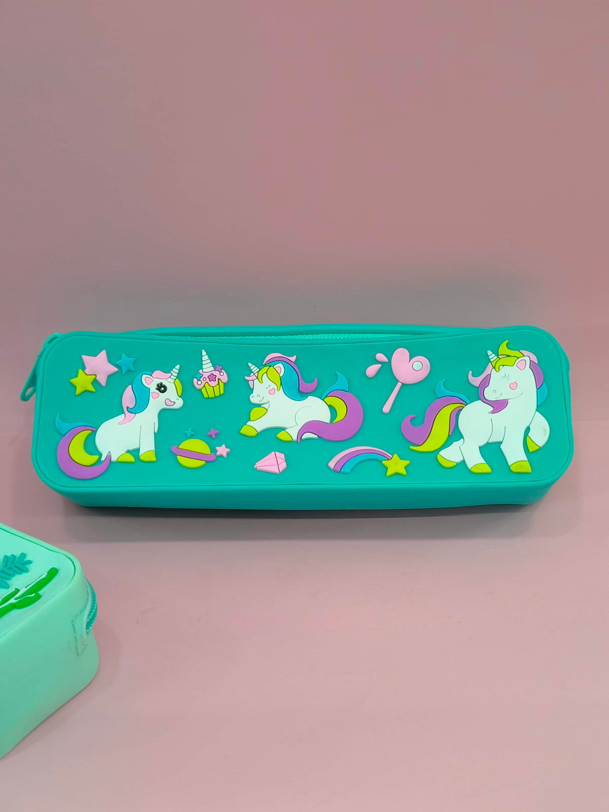 Silicon Pencil Pouch | Pen Pouch | Cute Stationery Pencil Case for School Kids | Fancy Compass Pouches for Students | Pen Pencil Box Cases | Assorted Colours & Designs - Light green